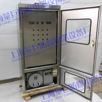 d.手动打开柜体侧边的进气阀,进行换气,上海量巨防爆正压柜设定的换气时间为10分钟。本产品需经过换气后才能通电运行。这步是为了把正压腔内易燃易爆的气体排出正压腔内,并充惰性避免运行的时侯的电器的电弧和易燃易爆混合气体发生爆炸性事故。